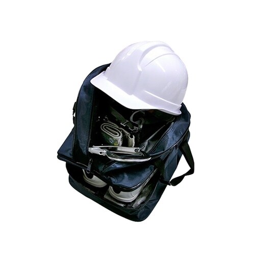 外ポケット1個付保護帽、墜落制止用器具(胴ベルト)、安全靴を一括で収納できます。パトロール等の移動時に便利です。 |