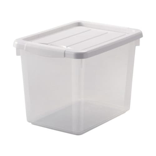 ワンタッチ開閉できるロックが付いた、浅深サイズがそろったフタ式収納です。同サイズでスタッキングが可能、隙間を無駄なく活用できます。 |