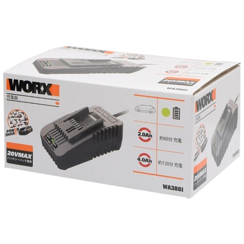 WORX 20V MAX リチウムイオンバッテリーパックに対応。 |