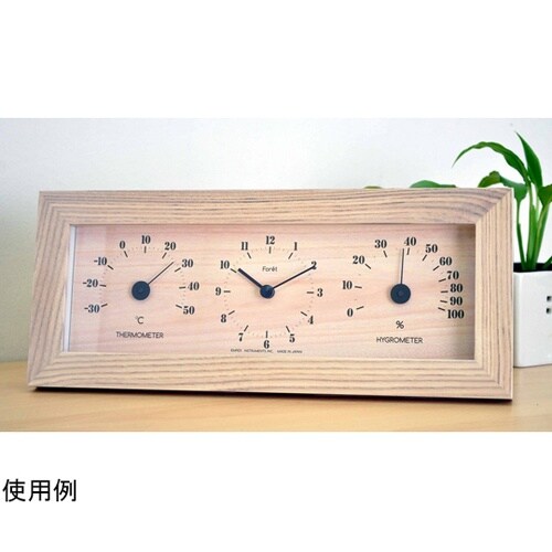 気品漂うウッディな風合いのフォレシリーズです。温かみある天然木仕様の時計付き温湿度計です。インテリアとしても最適です。ご自宅用はもちろん、送り物にもおススメです。 |