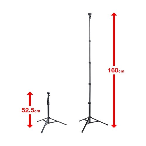 立った状態で撮影ができるウェブカメラスタンドです。5段階に伸長でき、お好みの高さでご使用できます。コンパクトに折りたたみ可能なので、持ち運びや収納の際も便利です。 |