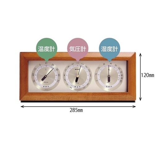 温度計・気圧計・湿度計が一体となった卓上タイプの気象計です。温度計、湿度計で熱中症、季節性インフルエンザ対策や冷暖房、除湿・加湿器運転目安など健康管理、お部屋の環境管理の目安として役立ちます。 |