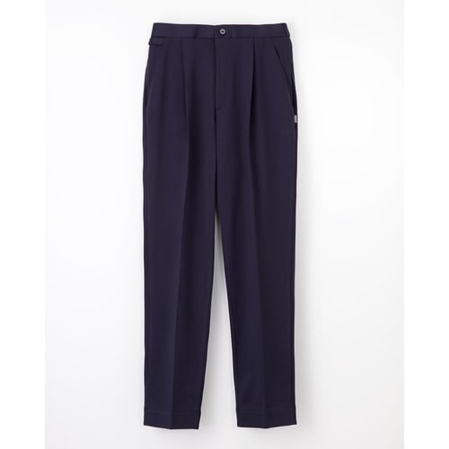 右脇キーループ付き、ワンタック、テーパードシルエット、センタープレス入り、ウエスト後ろゴム・前ファスナー