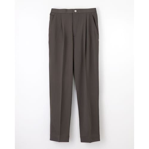 右脇キーループ付き、ワンタック、テーパードシルエット、センタープレス入り、ウエスト後ろゴム・前ファスナー