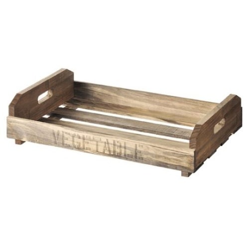 海外のマルシェ(市場)で見かける野菜出荷用木箱を店舗用にアレンジ。無公害塗料(F☆☆☆☆)を使用しているので食品陳列も可能です。 |