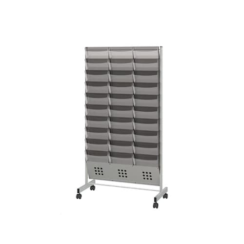 パンフレットが前倒れしないよう、透明なペーパーサポーターが付いています。厚み3.4cmまで収納できます。 |