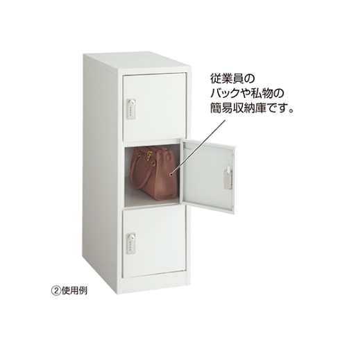 多目的に収納できるコンパクトロッカーです。従業員のバッグや私物の簡易収納庫です。 |