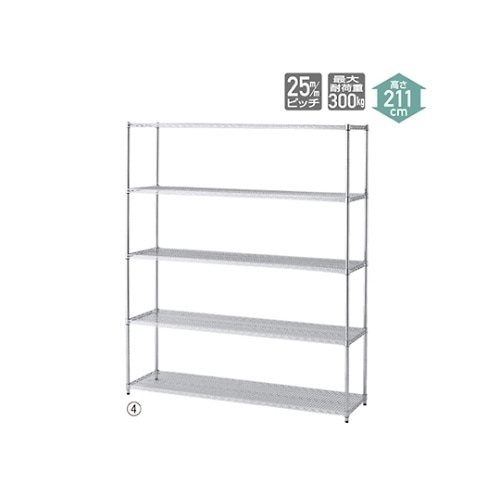 ワイヤーラック 重量棚展開 H210cm 5段 D45.7cm W182.2cm 61−62−11−4