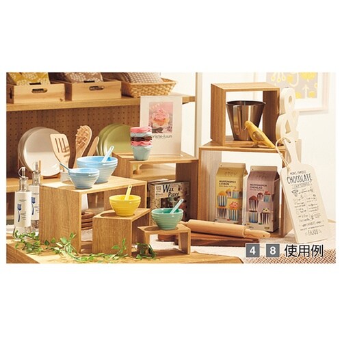 組み合わせ次第でいろんな表現ができる万能ディスプレイ。木目プリント紙貼りで自然な風合い。 |
