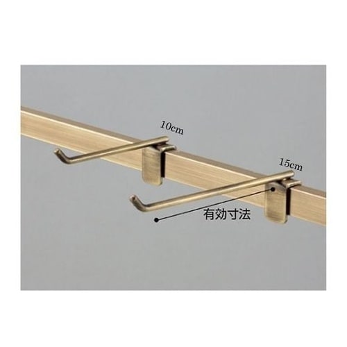 アンティークゴールド 角バー用フックハンガー シングル L15cm 1セット(5本入) 61−44−9−2