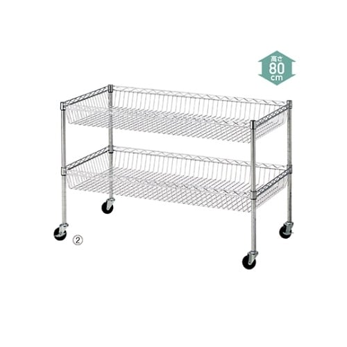 ワイヤーラックのワゴンタイプです。様々な商品の大量陳列におすすめです。