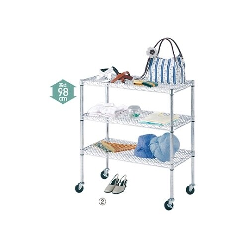 店研創意(ストア・エキスプレス) ワイヤーラック D45cmタイプ(キャスター付き) H98cm 3段 D45.7cm W121.2cm 61−62−1−3 A09A-6277