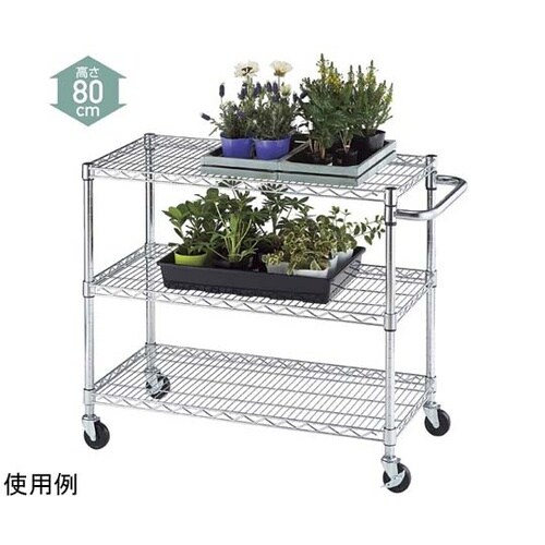 ワイヤーラックに、押し運びに便利なハンドルを付けたタイプです。 |