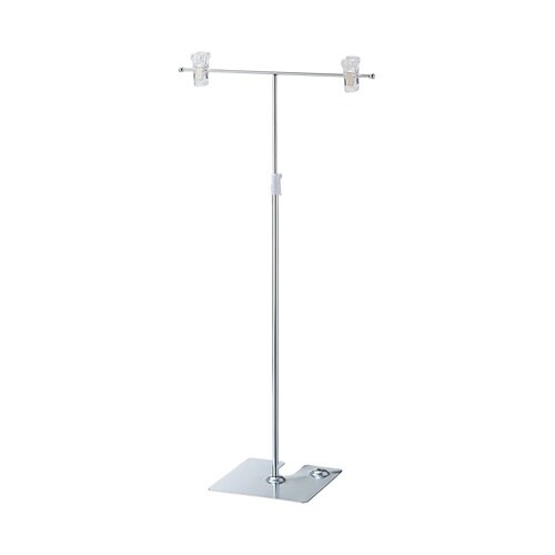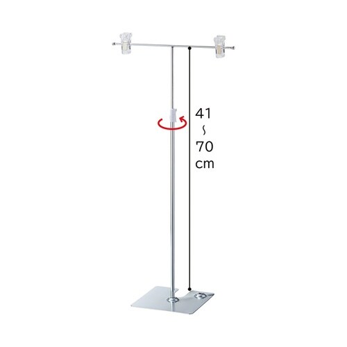 両面にポップを掲示できるT型の卓上スタンド。ワンタッチレバーで高さ調整可能。クリップは取り外し可能。5mm厚までのポップをご使用いただけます。 |