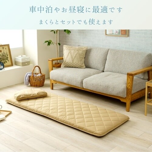 車中泊やお昼寝に使うことができる3層構造のマットレスです。ゴムバンドがついているため、楽に持ち運びや収納ができる商品となっています。 |