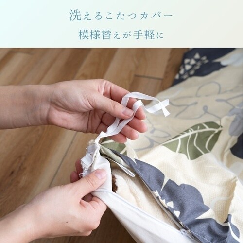 花柄デザインの表地・裏地にピーチスキン素材を使用し、柔らかな肌触りのこたつカバー。洗えるのでお手入れも簡単です。