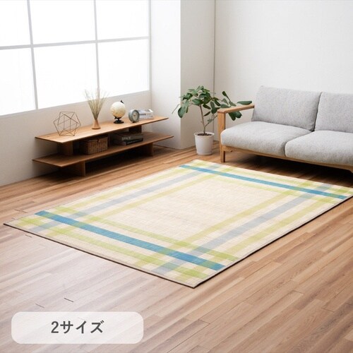 チェック柄がかわいらしいお洒落な竹ラグ。 |