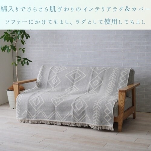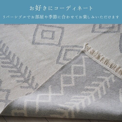 肌ざわりさらさらとして年間ご使用いただけます。コンパクトに折りたたみもでき、収納スペースもとりません。ラグとして、またソファーなどにかけてもご使用いただけるインテリアカバー&ラグです。