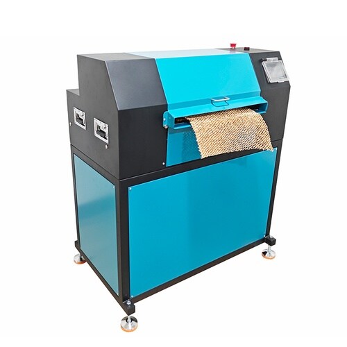 次世代ハニカム構造紙緩衝紙製造機。加工幅:550mm。速度:25m/分。小型機械の包装や大型機械などの包装に最適。緩衝紙はリサイクル可能。SDGs対応。10kgから300kgまで物品対応。100V対応 |