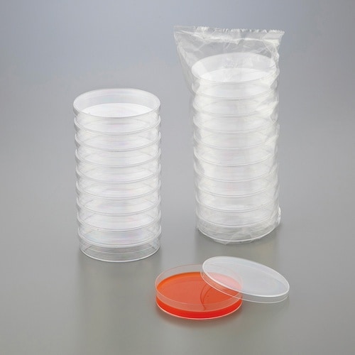 シャーレ内での混合や高さが出る真菌等の培養に使用できます。平滑性があり、培地を入れた際の色ムラができにくいです。外周にリブが付いており、積み重ねても崩れにくい形状です。 |