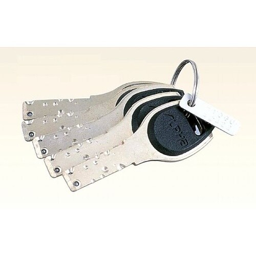 鍵の先端にフローティングボール(特許出願中)を埋め込み、鍵の複製、ピッキングを極めて困難にしました。標準で鍵が5本付いています。 |