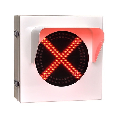○×信号灯です。屋外仕様の防水仕様(IPX3)赤LED68個、緑LED88個を使用し太陽光下や遠方からも視認可能です。 |