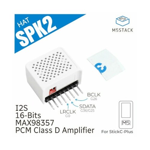 M5StickC Plus用のスピーカーHATです。MAX98357デジタルオーディオI2SアンプICと1 Wスピーカーを搭載しています。 |