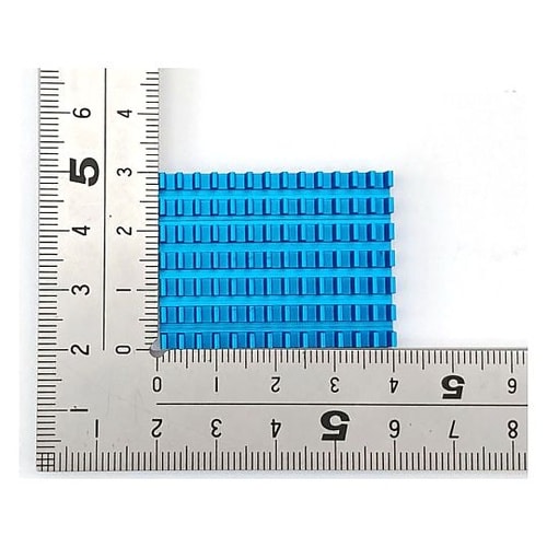 高さ5mmのアルミ放熱板(放熱器/ヒートシンク)です。薄型で表面積が比較的大きいため、Raspberry Piのチップセットの放熱用に適しています。 |