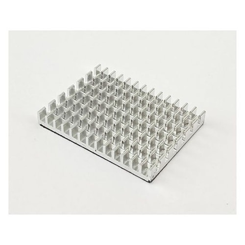 高さ5mmのアルミ放熱板(放熱器/ヒートシンク)です。薄型で表面積が比較的大きいため、Raspberry Piのチップセットの放熱用に適しています。