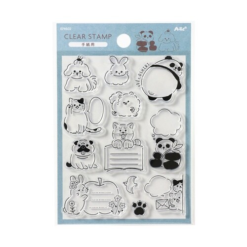 ふんわりかわいいどうぶつ柄!お手紙や手帳に使える便利なクリアスタンプ!ウサギやネコ、パンダなど動物をモチーフにした12種類のかわいいスタンプセットです。 |