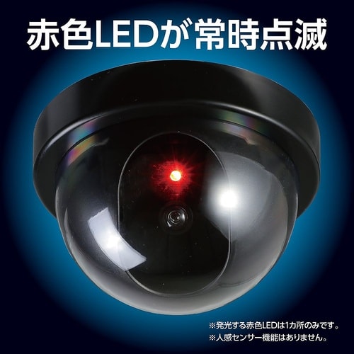 赤色LEDが点滅!簡単設置できる防犯ダミーカメラ!作動中ステッカー付!赤色LEDが約1秒間隔で点滅し、防犯意識を高めるドーム型ダミーカメラです。 |