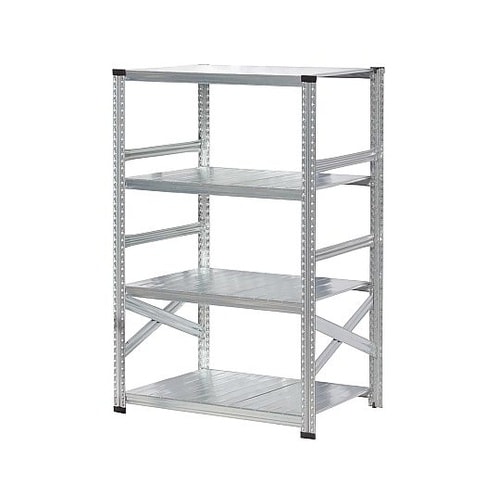 段数:4段 | カラー:シルバー | 材質:スチール製(亜鉛メッキ加工) | その他仕様:組み立て式(要工具) | 耐荷重:100kg(棚板1枚当たり…