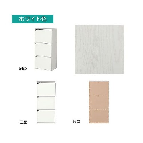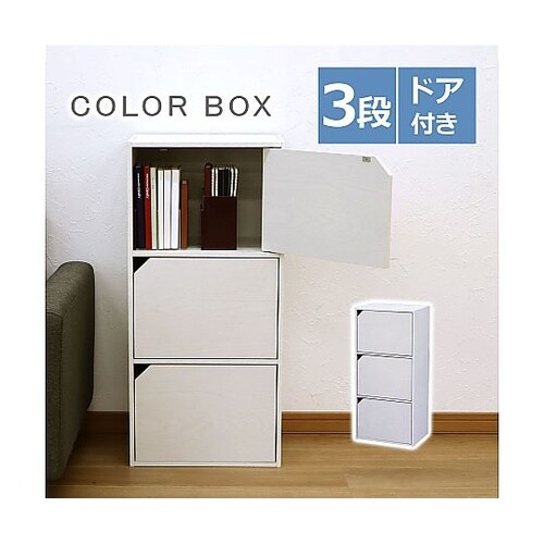 ドア付きカラーボックス3段 ホワイト C