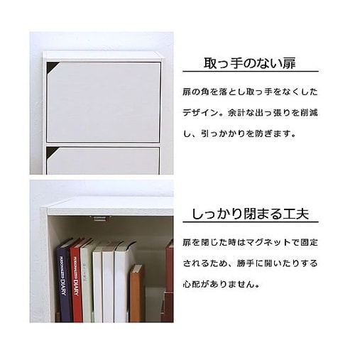 シンプルデザインで設置場所を選ばず使える、扉付きのカラーボックスです。木扉付き収納棚は生活感が出る収納物などを隠し、お部屋をすっきりとした印象に見せることができます。