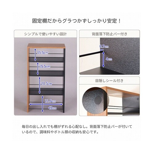 製品サイズ(約):幅30×奥行45×高さ80cm | 製品重量(約):10.1kg | 耐荷重(約):1枚あたり5kg、全体耐荷重15kg | 主材:…