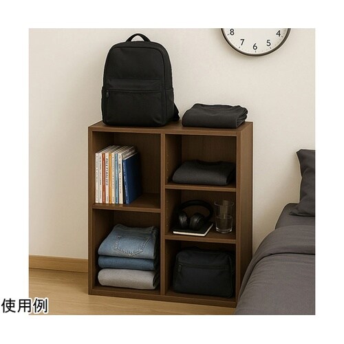 小物入れや本棚としても高い収納力を発揮します。お部屋の雰囲気にも馴染みやすいシンプルなデザインです。画像右側の棚は可動棚となっており、棚板位置の調節が可能です。ラックは上下逆に置いても使用できます。 |
