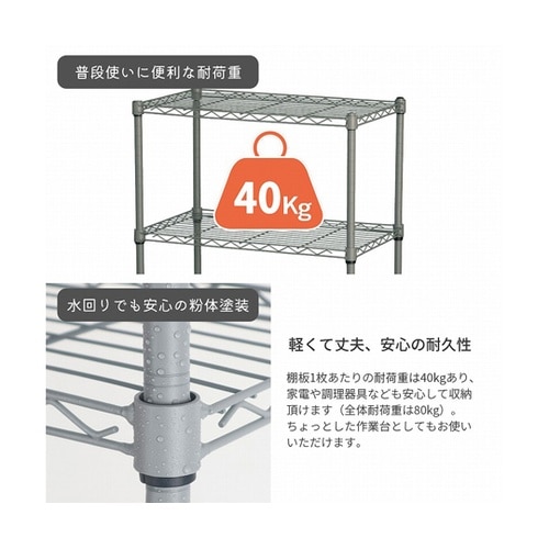 棚板垂直静止時40kgまで・枚、全体静止耐荷重80kgまで