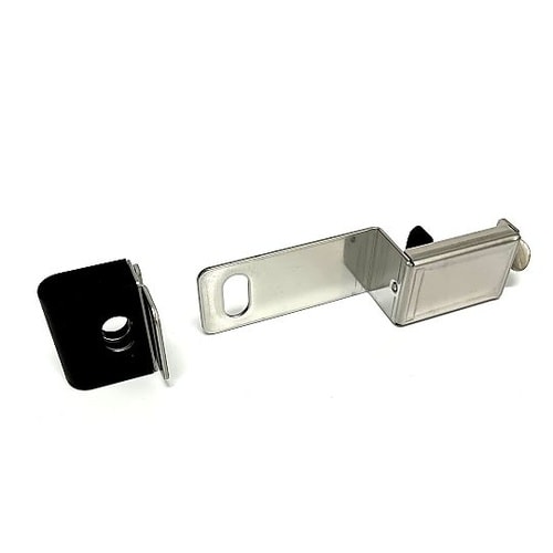 鍵が壊れた際等に扉を仮締できる金具です。ドアやドア枠に穴を開けずに取り付け可能です。南京錠は付属されておりません。商品ご購入後、別途お求め下さい。