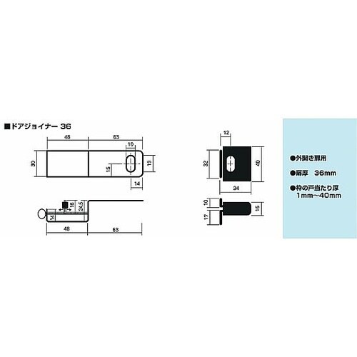 対応扉厚:扉厚36mm | 枠の戸当たり厚:1ー40mm | 単位:1個