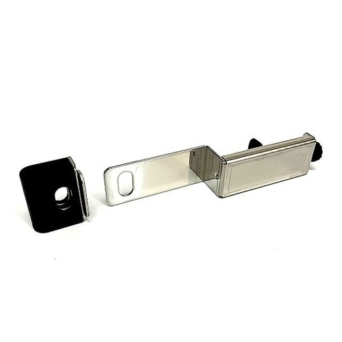 鍵が壊れた際等に扉を仮締できる金具です。ドアやドア枠に穴を開けずに取り付け可能です。南京錠は付属されておりません。商品ご購入後、別途お求め下さい。