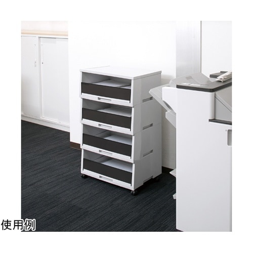 オフィスに馴染むシックなカラーの古紙分別ボックス。大量の用紙回収に便利です。A4用紙が2列保管できる仕切付きトレーには紙を取り出しやすいくぼみがあります。 |