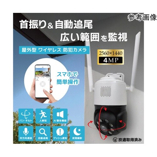 ピーアンドエス 400万画素ワイヤレス ドーム型 パン・チルト防犯カメラ(自動追跡) SEC−W1CAM−4M 1個 A09E-4545