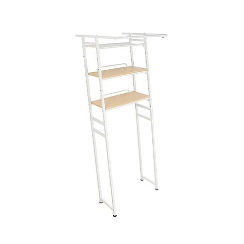 斜めに立掛けるランドリーラックです。ラック背面は空洞のため、洗濯機を移動せずに設置できます。幅は伸縮式、棚受けは可動式なのでお好みの位置で使用できます。 |