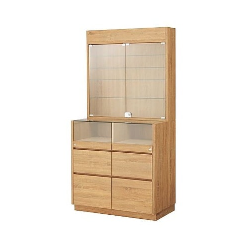 素材:木製 強化コート紙貼り | サイズ:幅90×奥行50×高さ180cm | 棚:ガラス5mm厚 | 内寸:収納部上部・幅85.4×奥行16.8×高…
