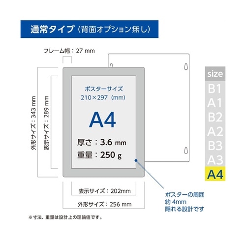 壁面用ポスターフレーム ポスターフィット 背面マグネットなし A4 61−805−51−1 1枚