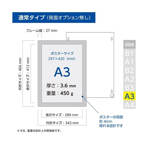 壁面用ポスターフレーム ポスターフィット 背面マグネットなし A3 61−805−51−2 1枚