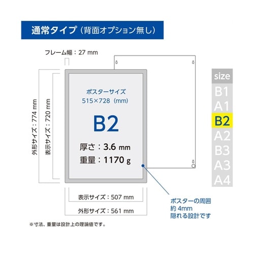 壁面用ポスターフレーム ポスターフィット 背面マグネットなし B2 61−805−51−5 1枚