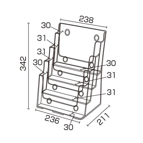サイズ:W238×D211×H342mm | カタログ収納部サイズ:W230×D29mm | 重量:700g | 素材:PS | 単位:1個