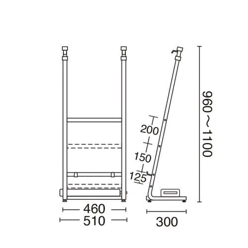 サイズ:W510×D300×H960ー1100mm | 重量:約3.2kg | 素材:スチール | 付属品:バリウエイト小 グレー×1ケ | その他仕…