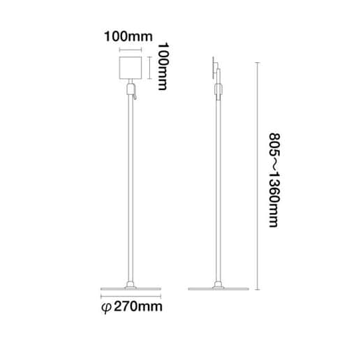 本体高さ:H805ー1360mm(発泡ボード貼込み面垂直時) | ベースサイズ:φ270mm | 発泡ボード貼込み面:100mm角 | 重量:2kg …